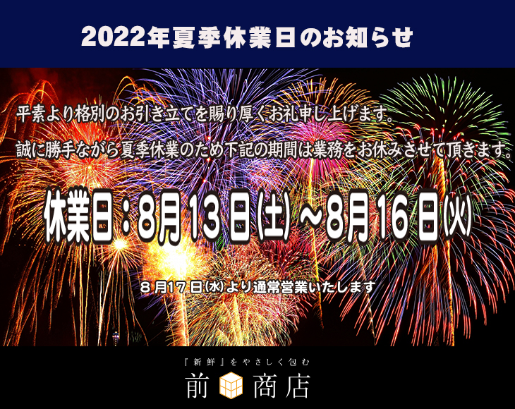 休業日:8月13日(土)〜8月16日(火)