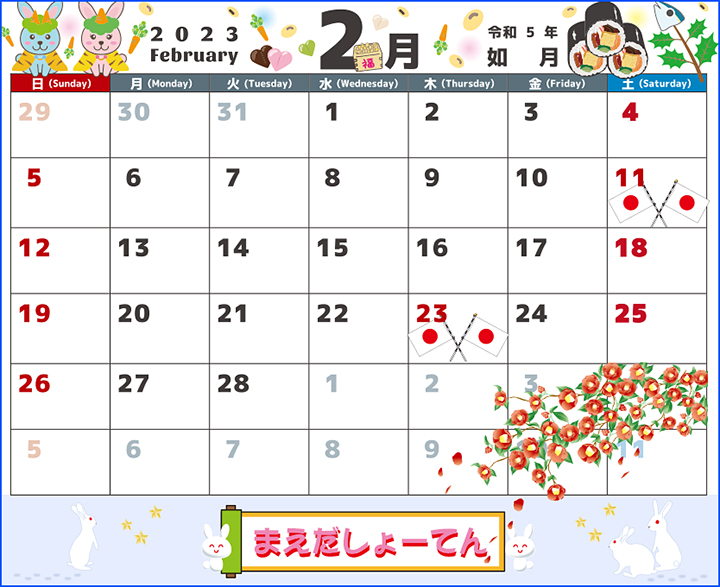 営業日カレンダー 『2月』 追加しました 23日は祝日の為、お休みでーす! ご注文の際にはご注意を・・・